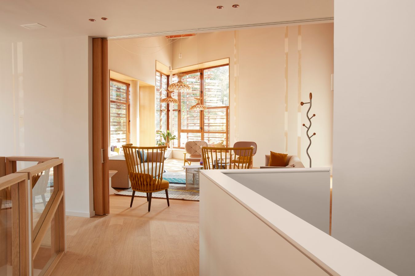 Responding to the need for privacy, the flexible floor plan allows for several smaller rooms to be created through sliding doors, each room with views of the garden and the adjacent modernist hospital building. The façade incorporates ceramic latticework offering a sense of transparency.