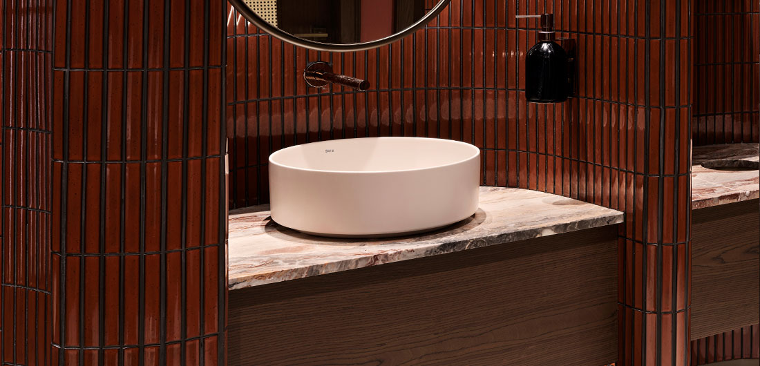The choice of bathroom elements was an important part of maintaining the authenticity of the design. Washbasins, toilets and accessories were chosen to complement the restaurant’s modern take on traditional elements. Over-countertop basins with smooth, rounded shapes echo the organic curves found throughout the space, while wall-hung, rimless toilets offer clean, sleek lines that blend effortlessly into the aesthetic without detracting from the overall design.